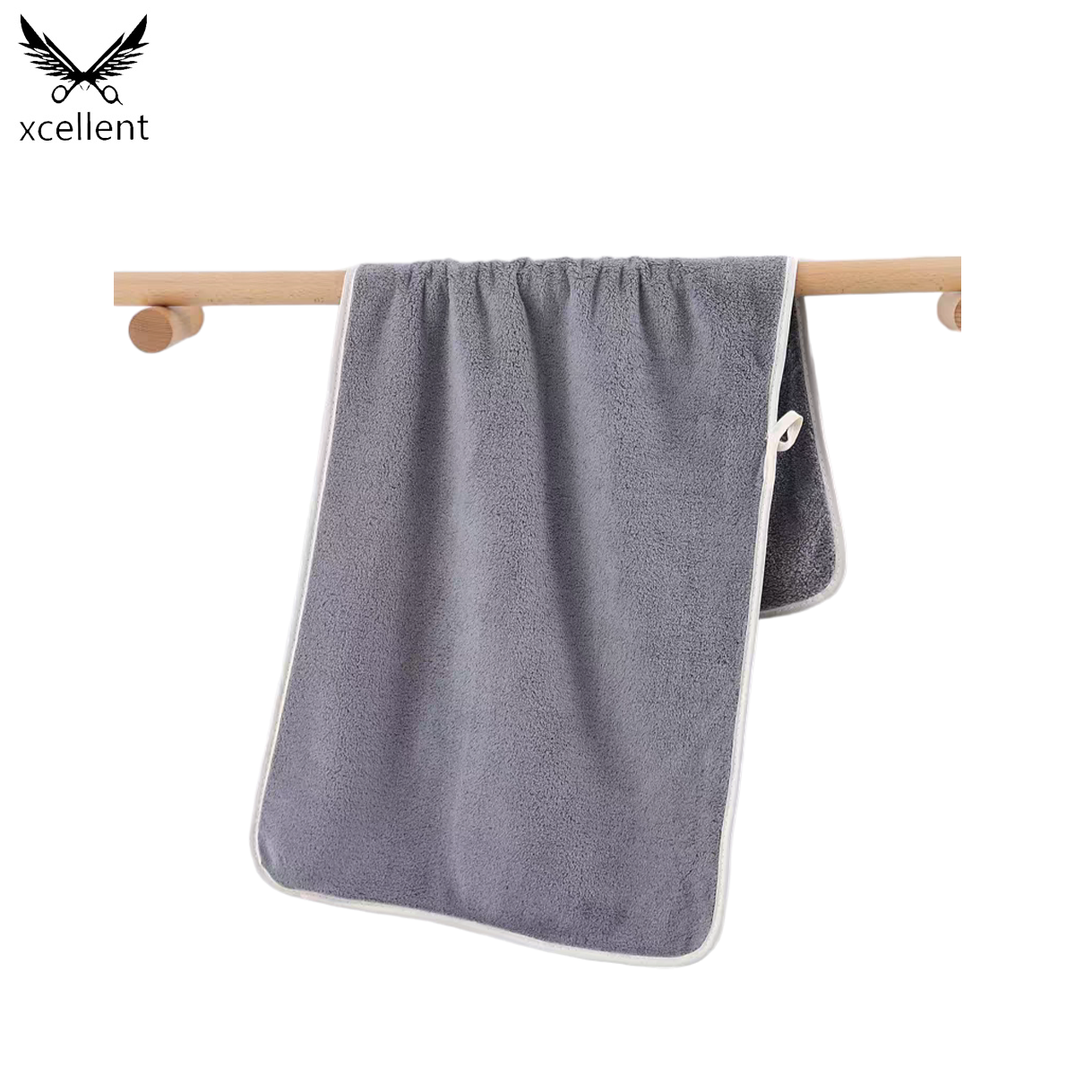 发廊毛巾采用高品质柔软面料,吸水性强且耐用,触感舒适亲肤。灰色底配白色边设计,简约大方,适合发廊、美容院及家庭使用。