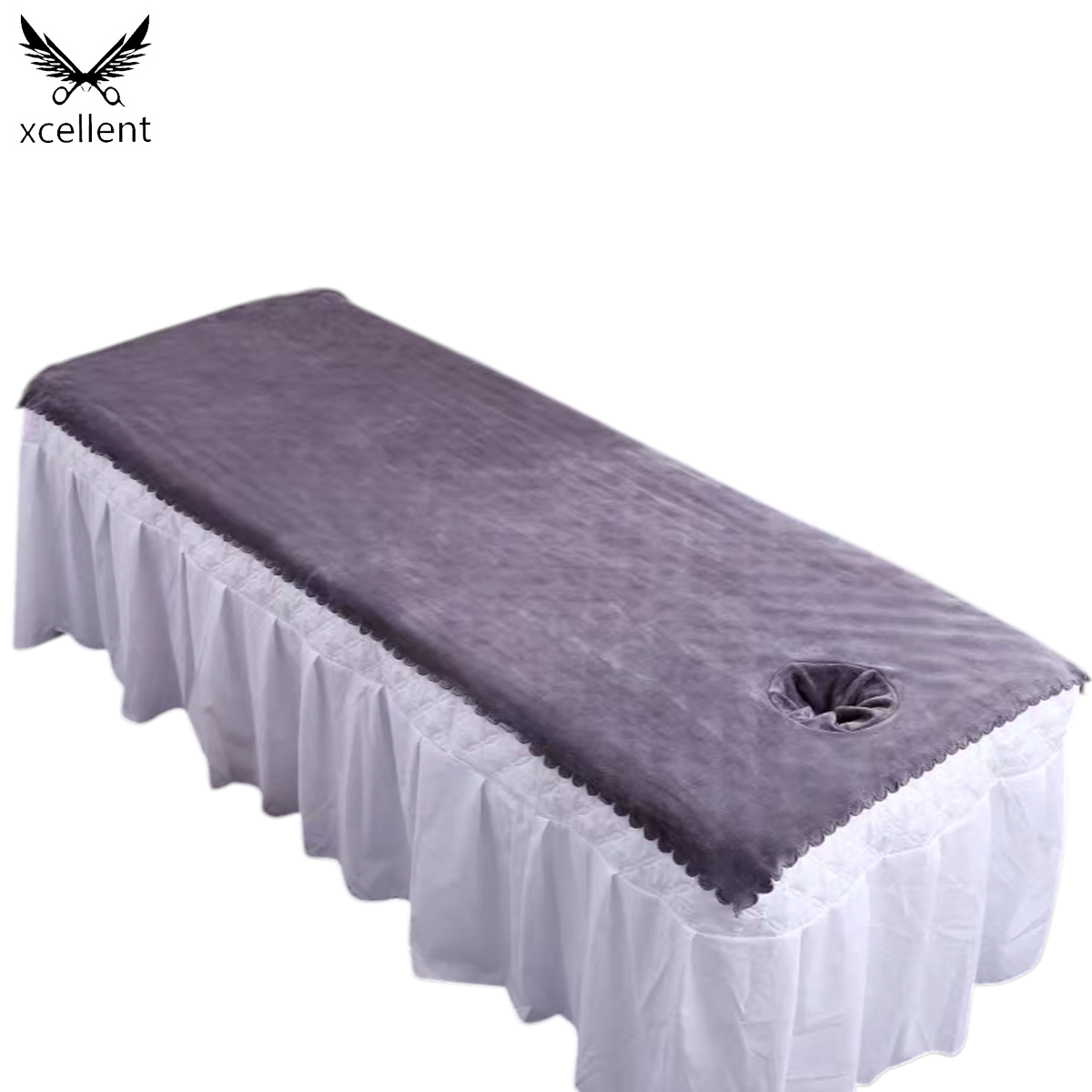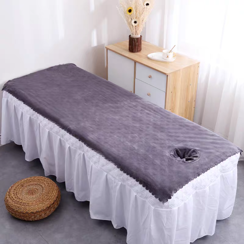 花边洞单采用柔软耐用的面料,透气舒适,中央预留洞口设计,方便美容、按摩及SPA操作。灰色搭配精致花边设计,简约大方,适合提升护理空间的专业与整洁感。